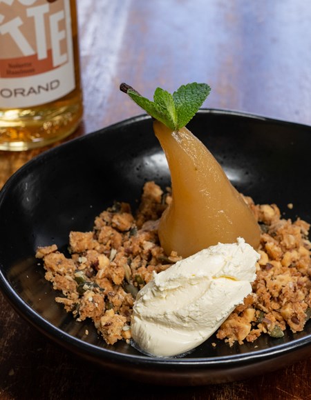 Hazelnut Poached Pear Crumble