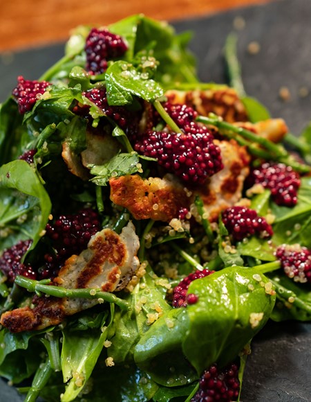Pistachio, Watercress & Herb Salad, Feta Crumbles, Cranberry & Orange Vinaigrette