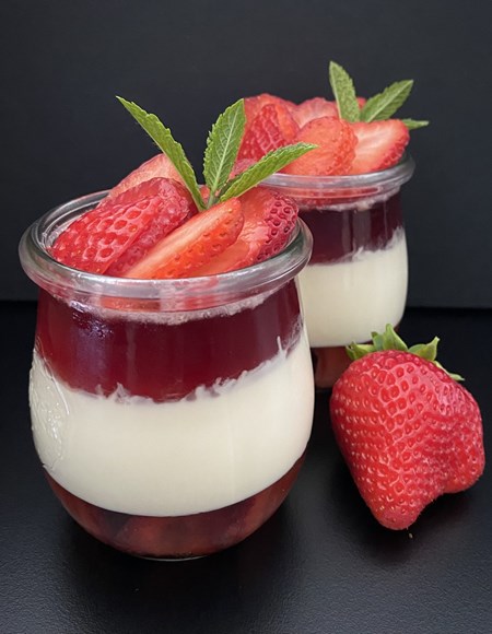 Mint panna cotta with strawberry jelly
