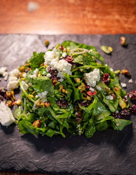 Pistachio, Watercress & Herb Salad, Feta Crumbles, Cranberry & Orange Vinaigrette